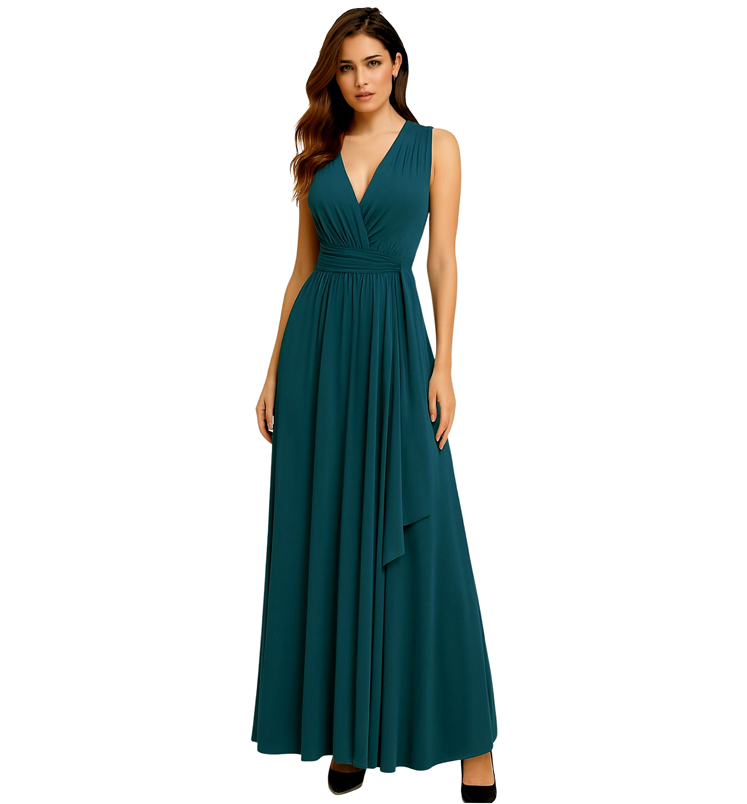 Egy ruha, mely nagyon sokféleképpen viselhető! Ezt a darabot sosem unod meg! Lágy esésű, dereka gumis, oldalt felsliccelt bő szoknya résszel. Méret nélküli, nagyon elasztikus! Háta teljesen nyitott. A felső része két hosszú pántból áll, amit sokféleképpen megköthető. Elegáns, tökéletes választás koszorúslányoknak is! Hossza a válltól 147 cm, ebből a szoknyarész 97 cm. Derékbősége 84-112 cm. Mell részén a két hosszú pánt bármilyen méretre köthető.