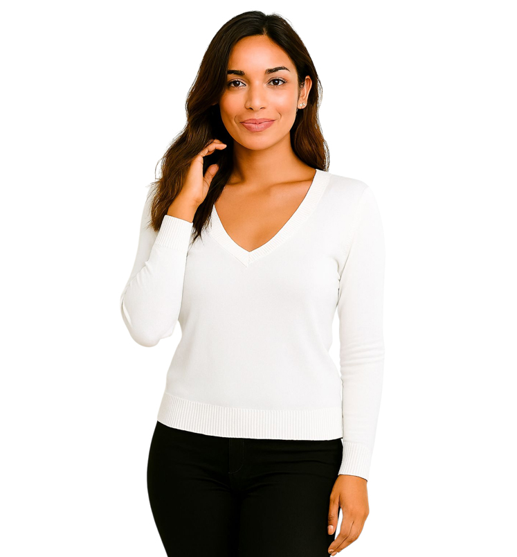 V-nyakú kötött felső készletenszín: fehér