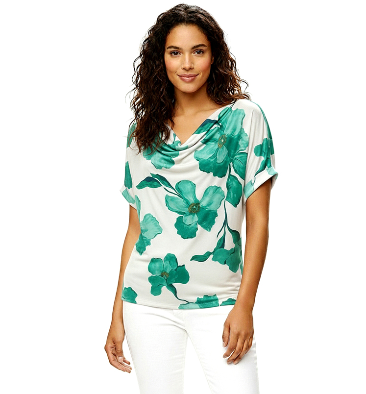 Mintás, rövid ujjú jégselyem felsőkészletenszín: drappminta: lila virág
