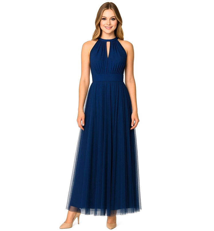 Maxi, nyakban csepp dekoltázzsal záródó ruha