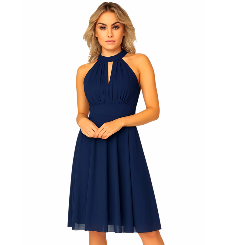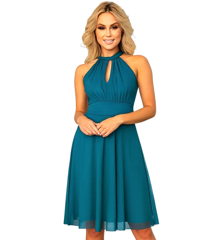 Nyakkban csepp dekoltázzsal záródó mini ruha