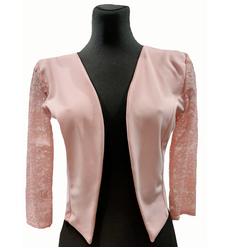 Klasszikus boleró csipkés ujjal készletenszín: púderrózsaszín
