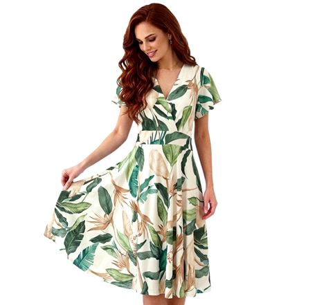 Mintás, lenge jégselyem ruha övvel