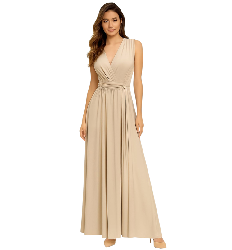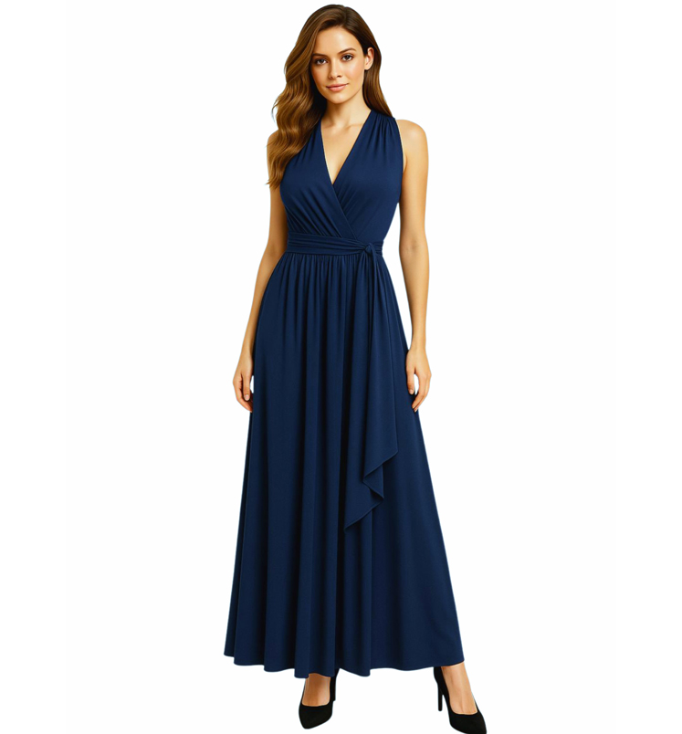 Egy ruha, mely nagyon sokféleképpen viselhető! Ezt a darabot sosem unod meg! Lágy esésű, dereka gumis, oldalt felsliccelt bő szoknya résszel. Méret nélküli, nagyon elasztikus! Háta teljesen nyitott. A felső része két hosszú pántból áll, amit sokféleképpen megköthető. Elegáns, tökéletes választás koszorúslányoknak is! Hossza a válltól 147 cm, ebből a szoknyarész 97 cm. Derékbősége 84-112 cm. Mell részén a két hosszú pánt bármilyen méretre köthető.
