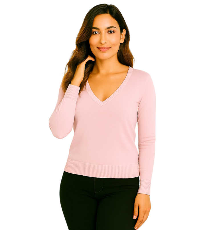 V-nyakú kötött felső készletenszín: púderrózsaszín
