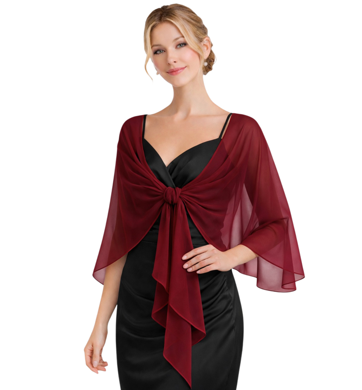 Elegáns, muszlin hatású stólakészletenszín: bordó